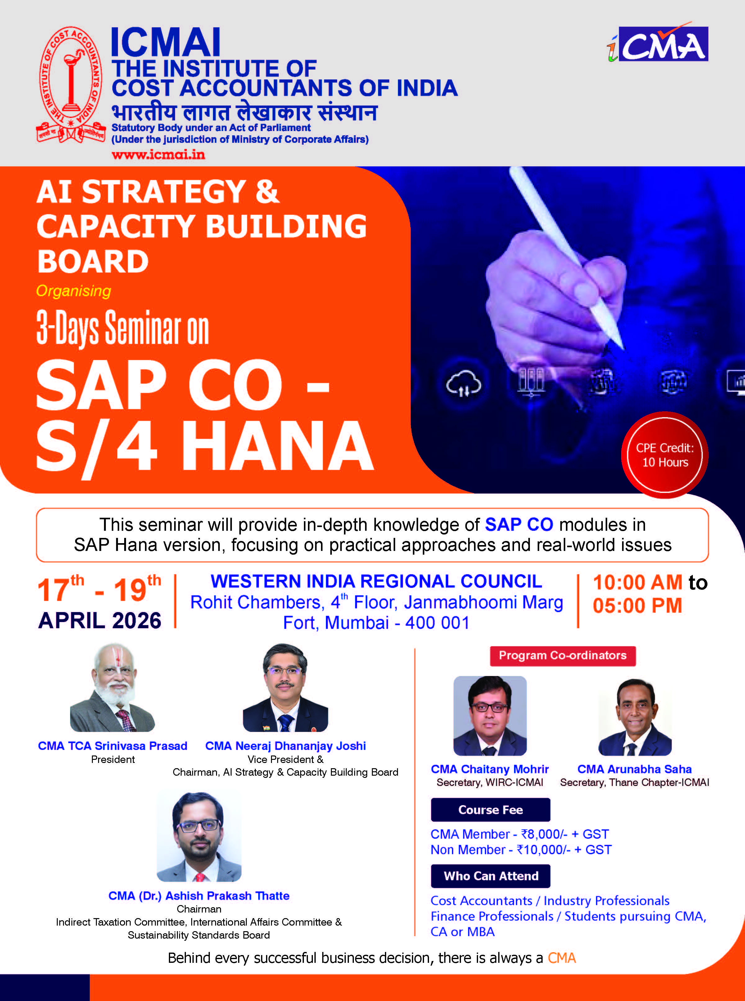 CMA Neeraj Dhananjay Joshi is a seasoned professional with over two decades of experience in Cost and Management Accounting.